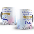 Caneca de cerâmica 11oz, com a frase inspiradora “Nenhum obstáculo é grande demais quando você acredita em Deus”, ideal para fortalecer a fé e trazer esperança para a rotina.
