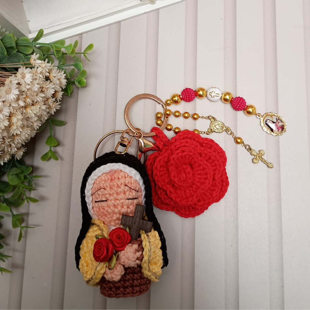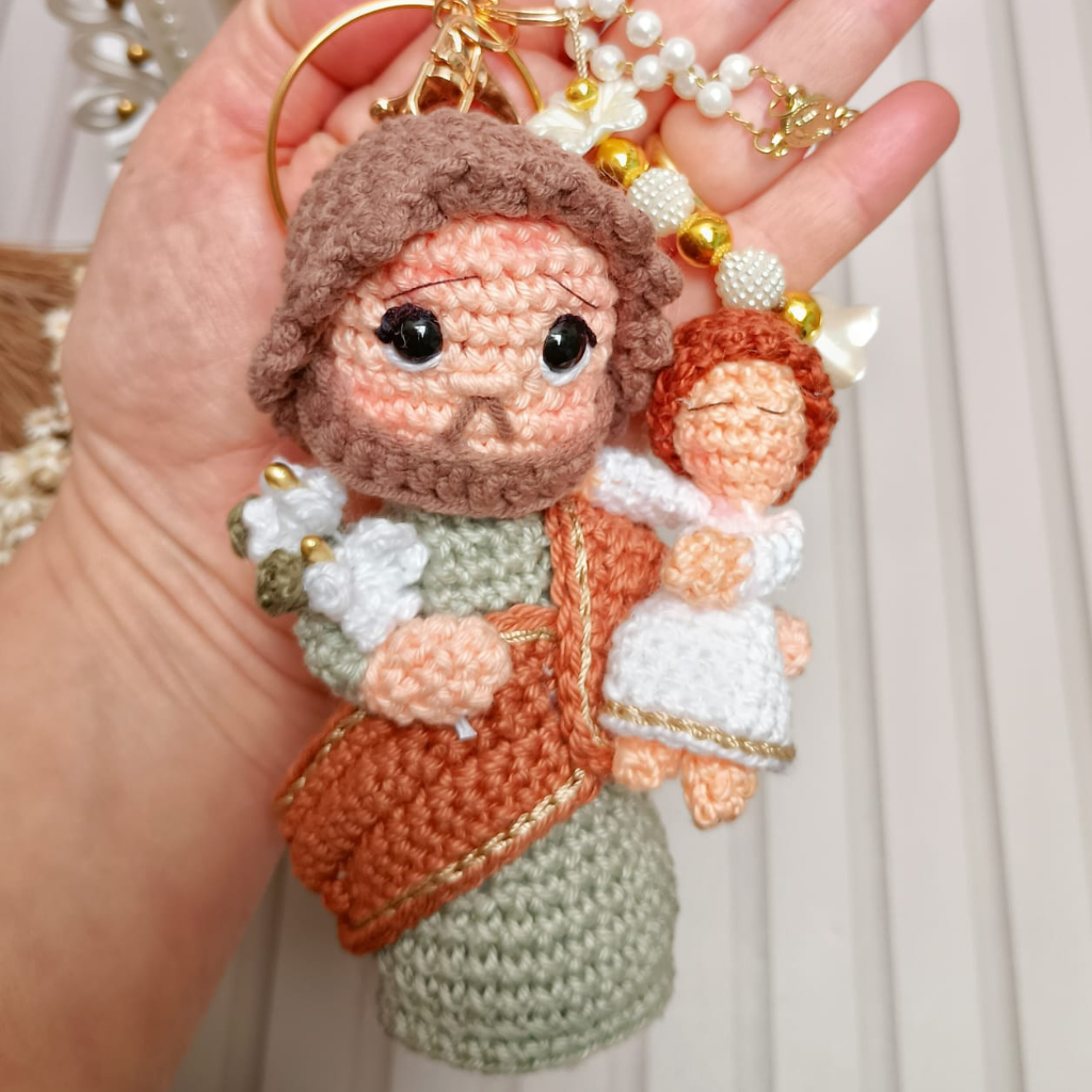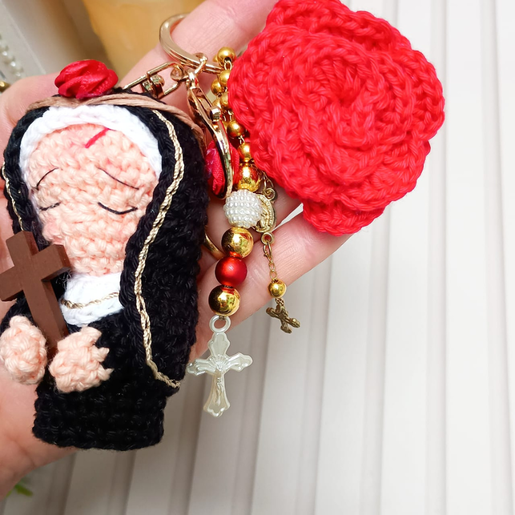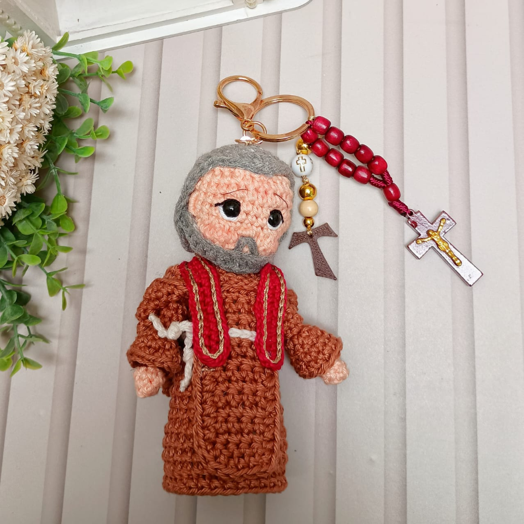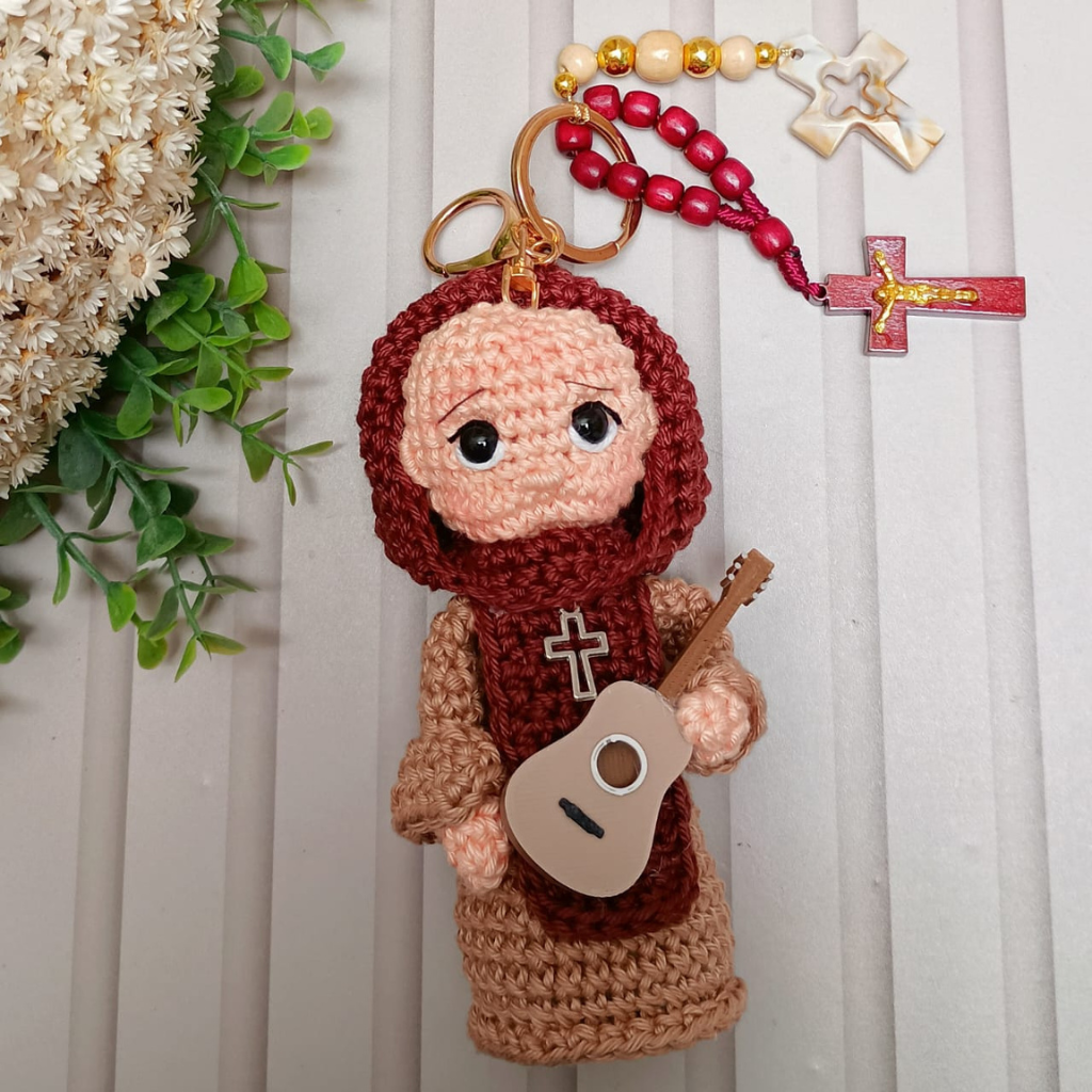 Encante-se com nossos delicados chaveiros de crochê inspirados em santos e símbolos da fé católica!