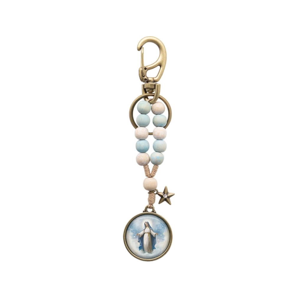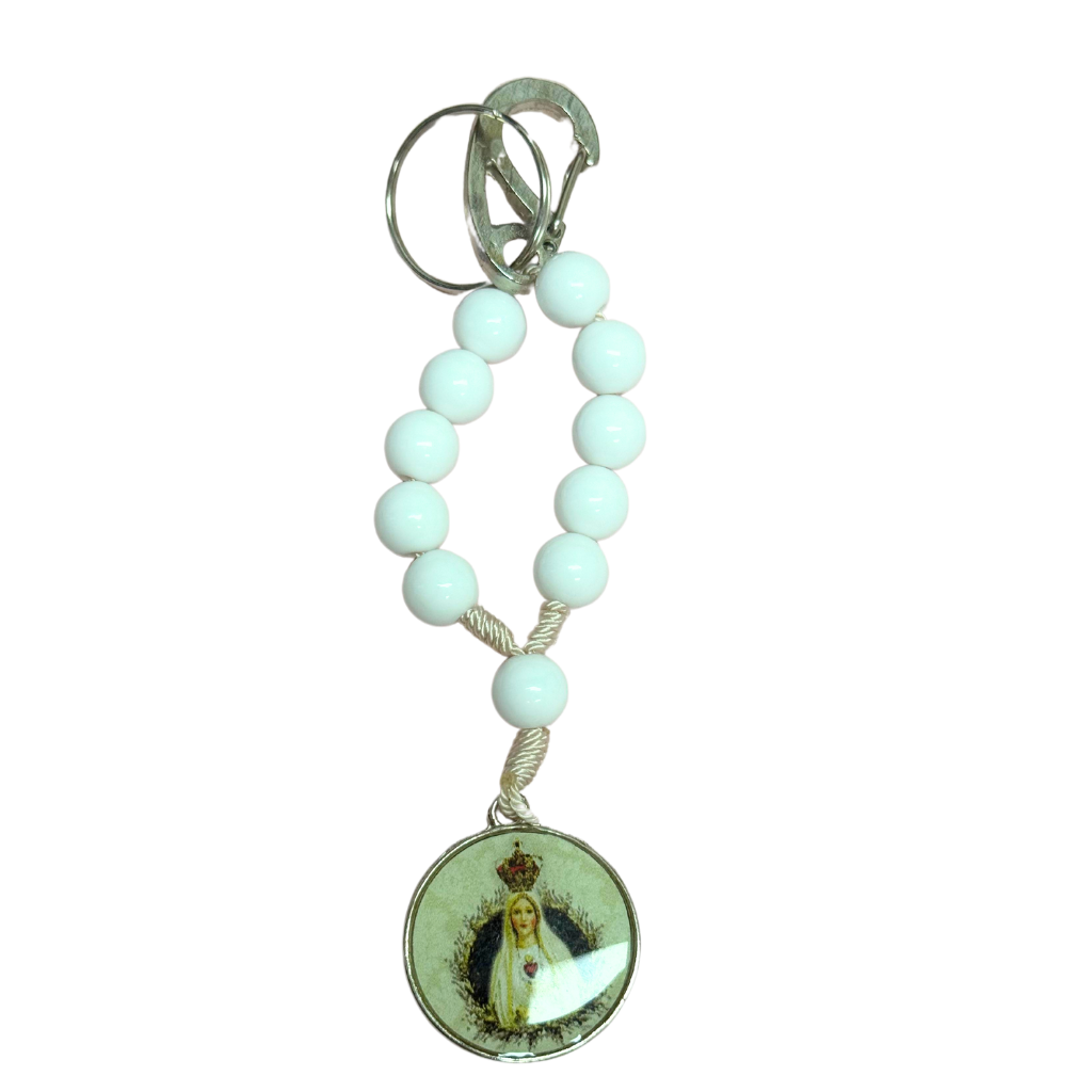 O Chaveiro pérola Dezena Nossa Senhora de Lourdes é a combinação de um acessório delicado que expressa a fé e devoção na Virgem Maria.