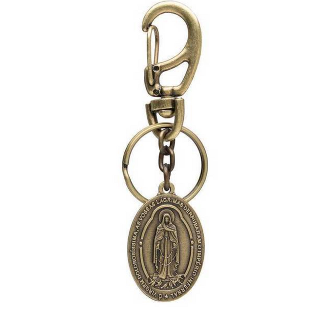 Com material de qualidade, o Chaveiro Nossa Senhora das Lágrimas e Jesus Manietado com Mosquetão representa a fé e a proteção para o dia a dia.
