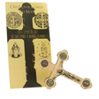 Ela é feita em MDF, metal com acabamento em ouro velho e folheto, na cor marrom e possui 9 cm x 6,5 cm x 0,6 cm.