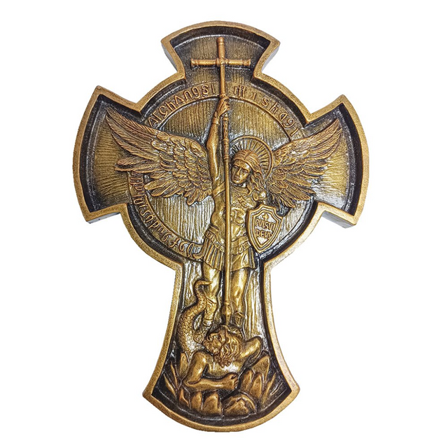 Cruz de São Miguel Arcanjo em Mármore Pintura Bronze