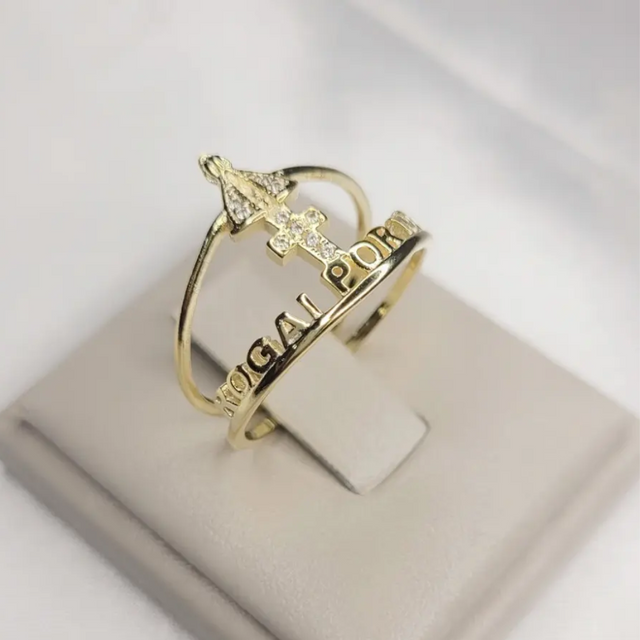Anel de N. Sra. Aparecida com a escrita "rogai por nós";