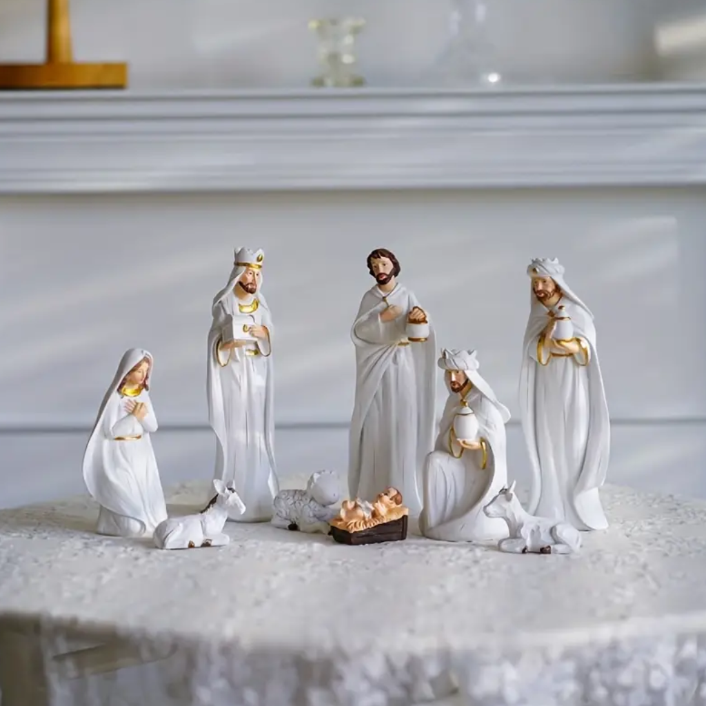 Traga para o seu lar a beleza e a ternura do verdadeiro espírito do Natal com este presépio delicado de 9 peças.
