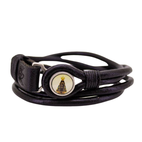 Our Lady of Aparecida Bracelet - Black Leather