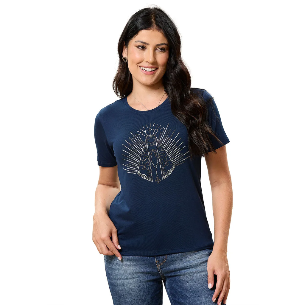 More than just a piece of clothing, this baby look is an expression of love for Mother Aparecida. Made with soft, durable fabric, it provides absolute comfort and a perfect finish that enhances the look and devotion. The rhinestone application delicately illuminates the image of Our Lady, revealing meticulous and highly durable work. Ideal for those who wish to carry the mantle of Brazil's Patroness with reverence, beauty, and faith. Available in dark blue. Dress in love.