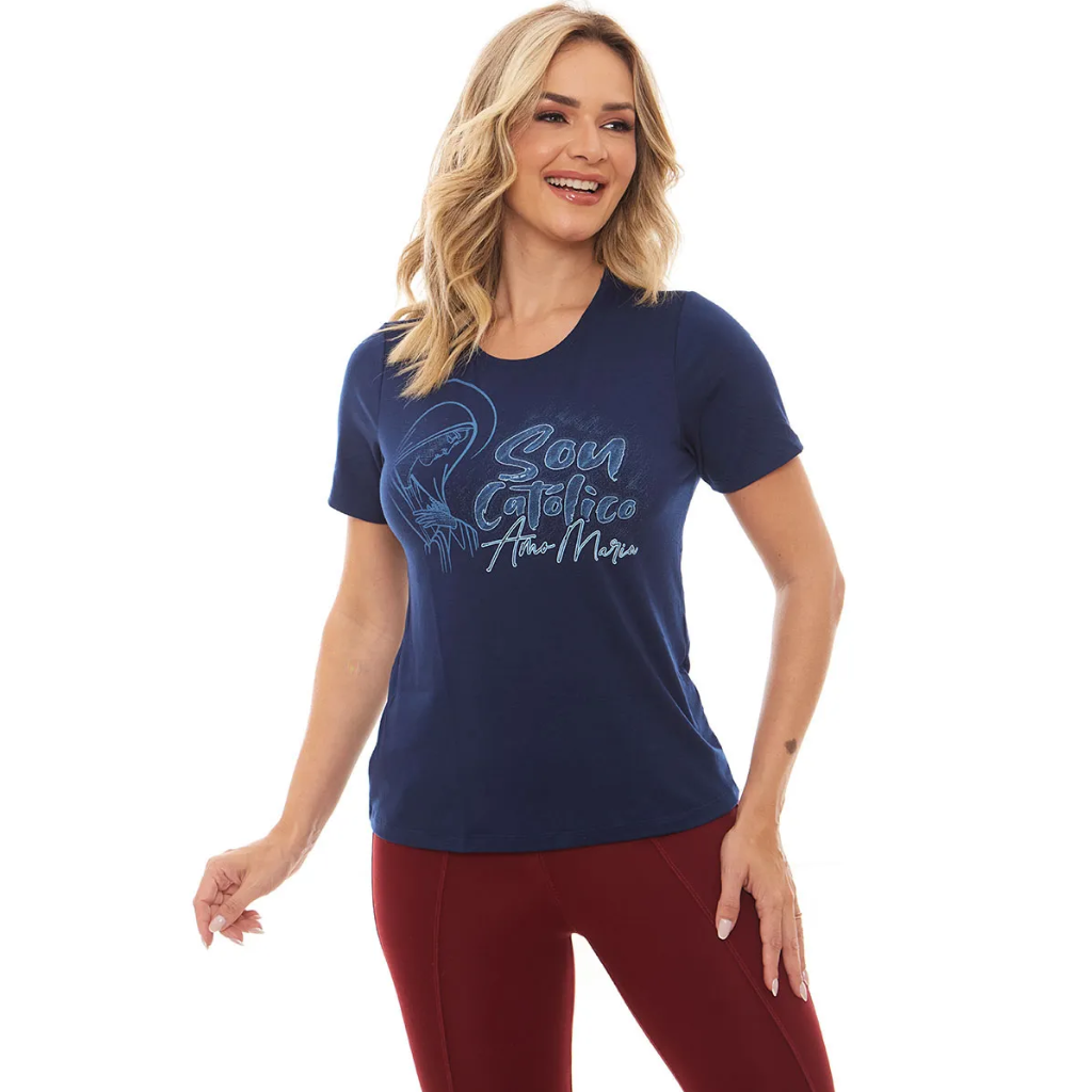 Baby Look with devotional message I am Catholic and I Love Mary is the ideal option for creating basic looks for everyday life.