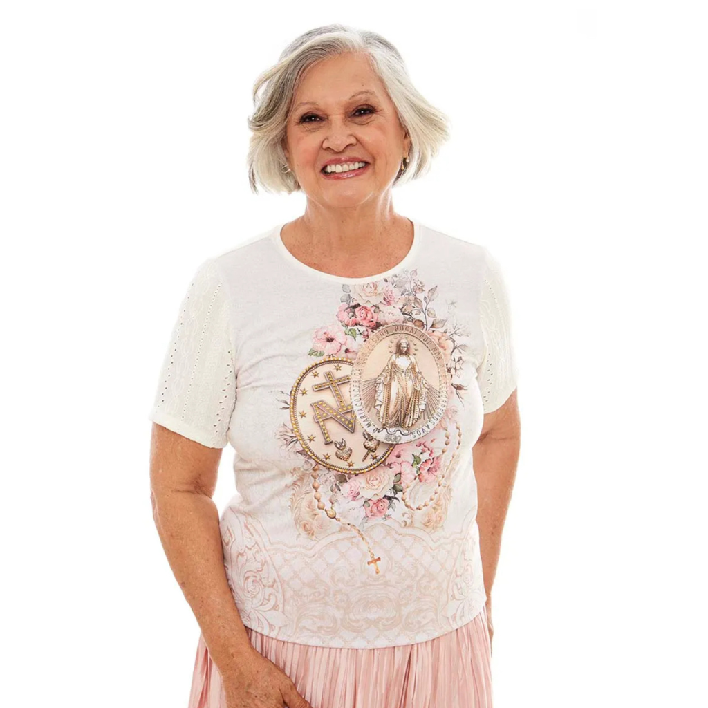 The Medalha da Graça Baby Look is a comfortable and stylish piece, ideal for those who want to express their faith with elegance.