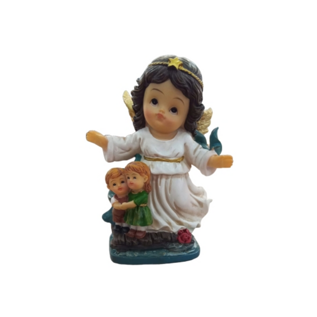 The children's Guardian Angel is made of resin, colorful and measures 10cm.