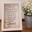 Delicado quadro decorativo com a tradicional oração do Anjo da Guarda, perfeito para abençoar o lar ou o quarto das crianças.