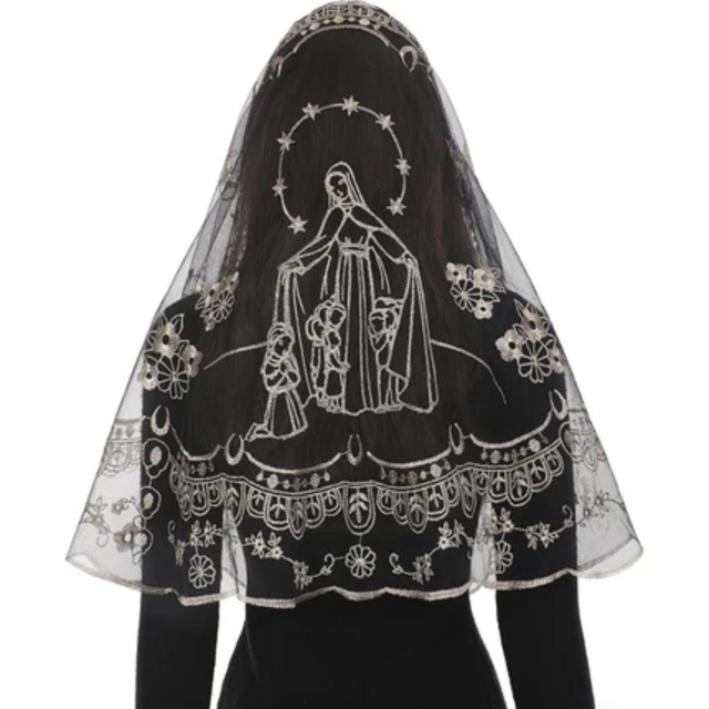 Elegant and full of spiritual meaning, it is perfect for moments of prayer, adoration, Mass, and Marian gatherings, helping to express devotion with reverence and delicacy.