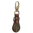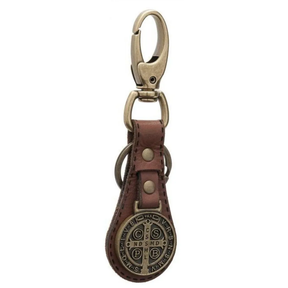 El llavero de cuero marrón con medalla de San Benito combina verdaderamente belleza y funcionalidad.