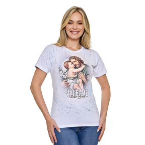 ¡Ayúdame, San José! Camiseta Baby Look estampada con la imagen del Glorioso San José, esposo de la Virgen María.