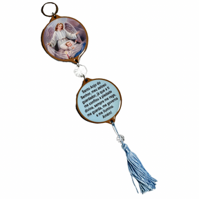 Precioso adorno infantil elaborado con mucho mimo y delicadeza, perfecto para decorar las habitaciones infantiles y garantizar la protección del Santo Ángel. Ideal para regalar en bautizos, nacimientos y otras ocasiones especiales. ¡Consigue el tuyo ahora y protege al niño que tanto quieres!