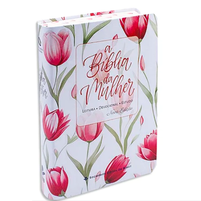 A Bíblia da Mulher NAA tamanho portátil capa Tulipa Rosa