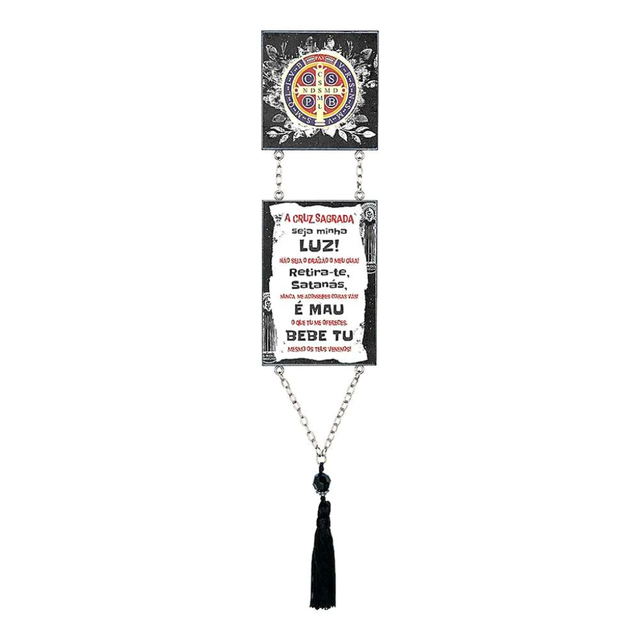 Adorno De Porta Madeira Preta Com Corrente São Bento