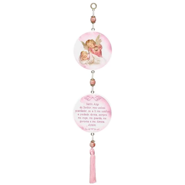 Adorno Infantil Anjo Da Guarda Branco & Rosa