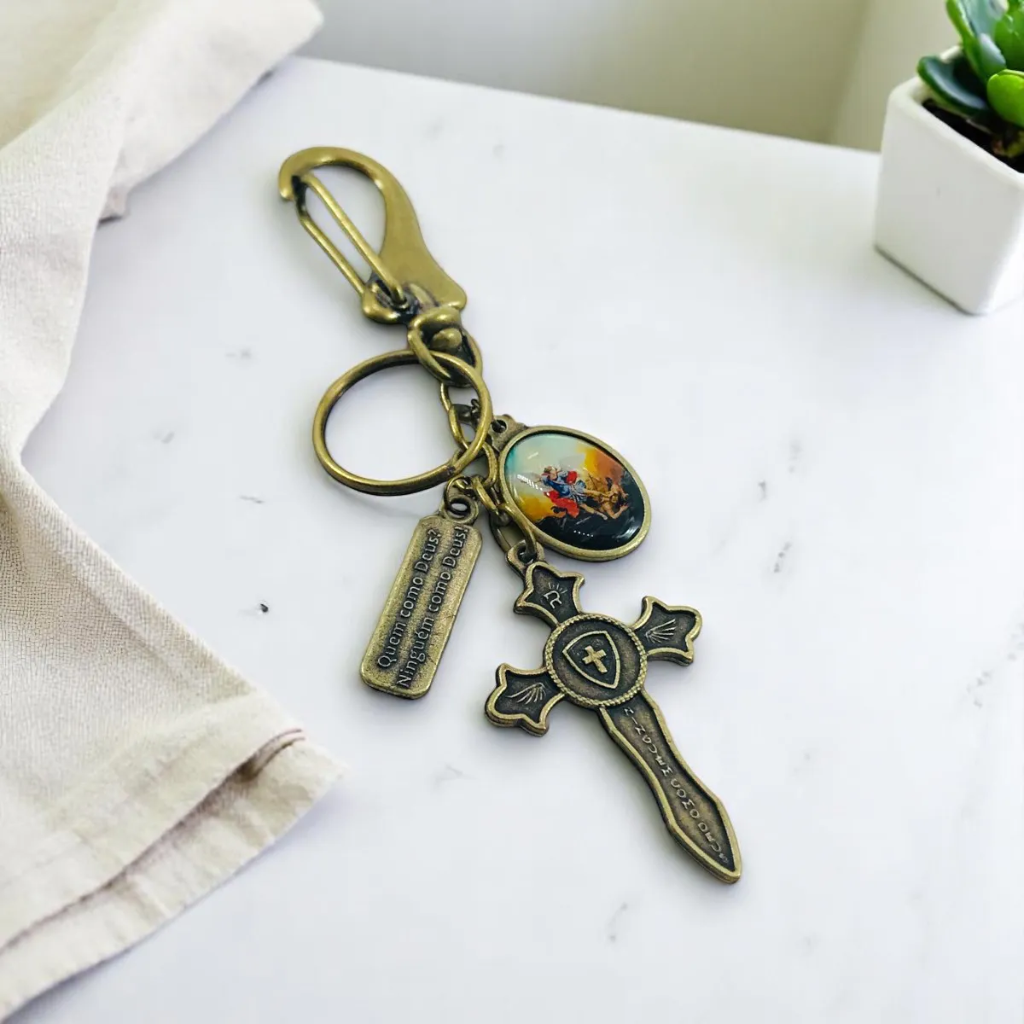 O Chaveiro São Miguel é perfeito para se ter em casa ou em outros acessórios que necessitam de um chaveiro.