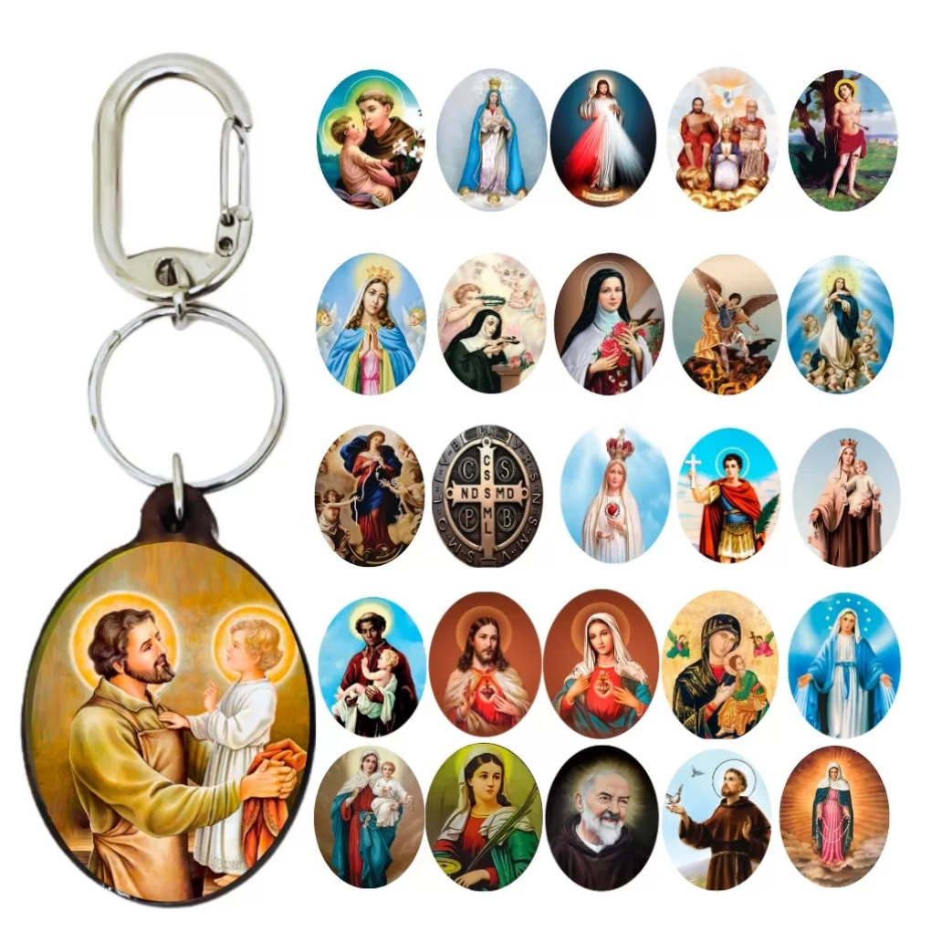 Os Chaveiros Diversos são acessórios populares entre os devotos e fiéis, sendo usados como forma de expressão de fé e proteção espiritual. Esses chaveiros geralmente apresentam imagens ou símbolos dos santos católicos, representando figuras importantes da Igreja Católica, com o intuito de recordar sua vida e virtudes, e buscar sua intercessão em momentos de necessidade.