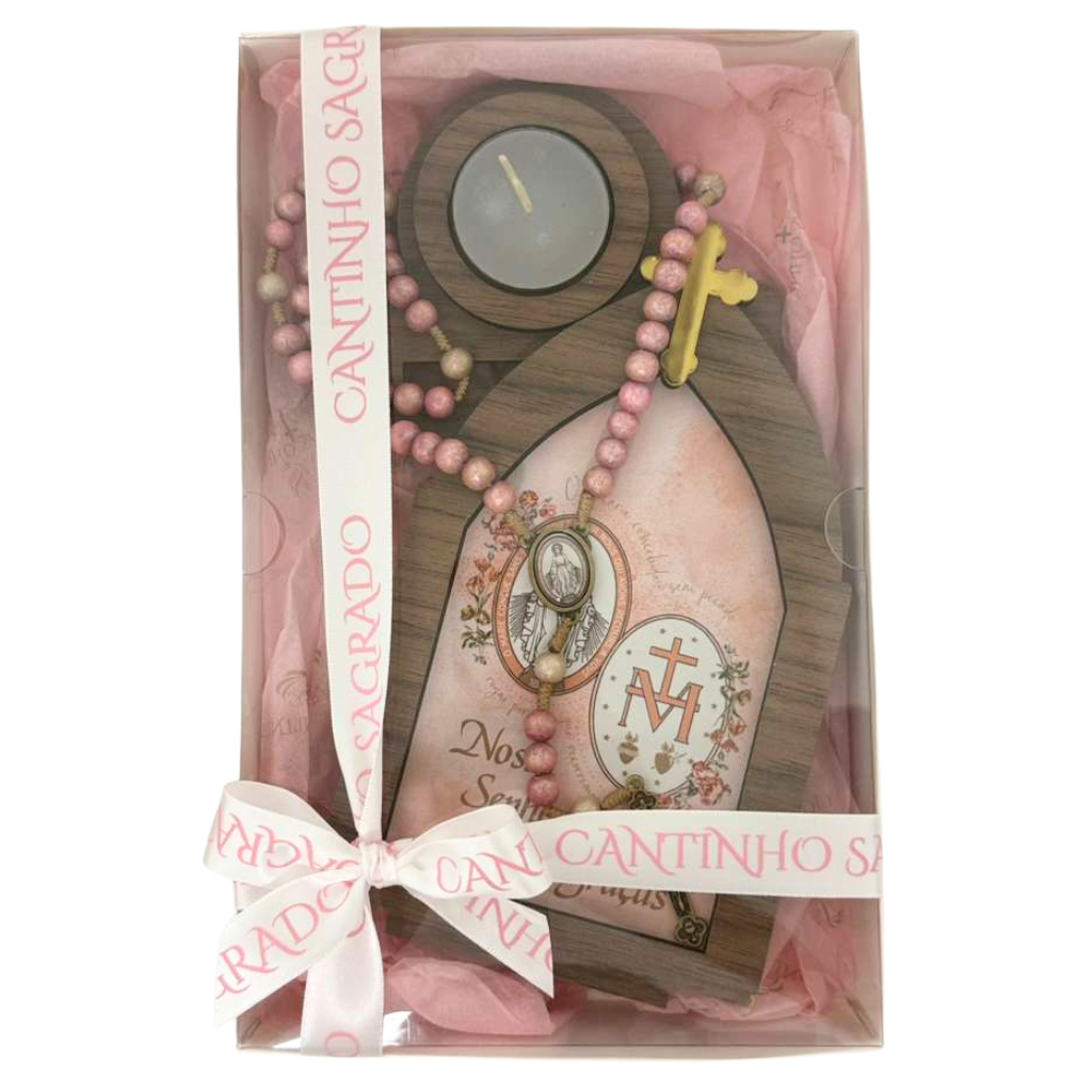 Kit Nossa Senhora das Graças está esgotado e será enviado assim que estiver de novo em estoque.
