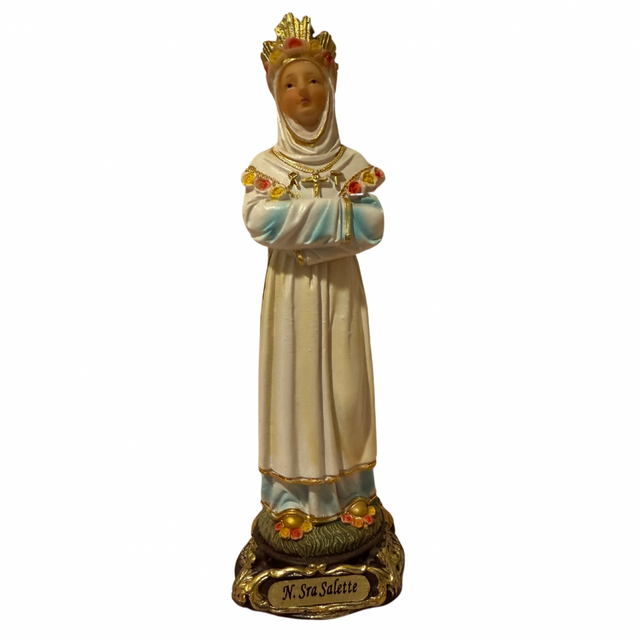 A imagem de Nossa Senhora de La Salette é uma representação da aparição da Virgem Maria que ocorreu em 19 de setembro de 1846 em La Salette, uma aldeia nos Alpes Franceses, onde Maria apareceu a dois pastores, Maximin Giraud e Melanie Calvat, que tinham cerca de 11 e 15 anos, respectivamente.