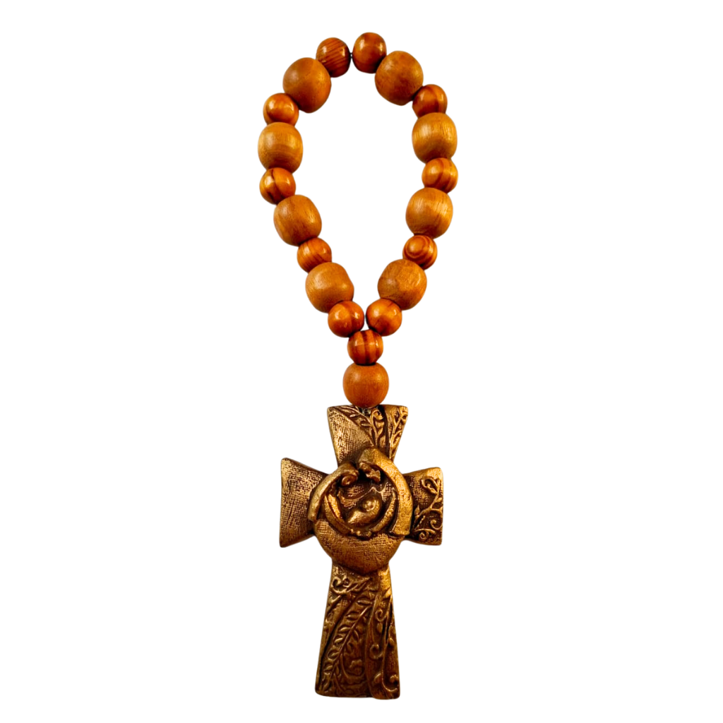 Com acabamento rústico e detalhes delicadamente trabalhados, a cruz carrega um design atemporal que remete à tradição cristã e ao valor do artesanal feito com propósito.