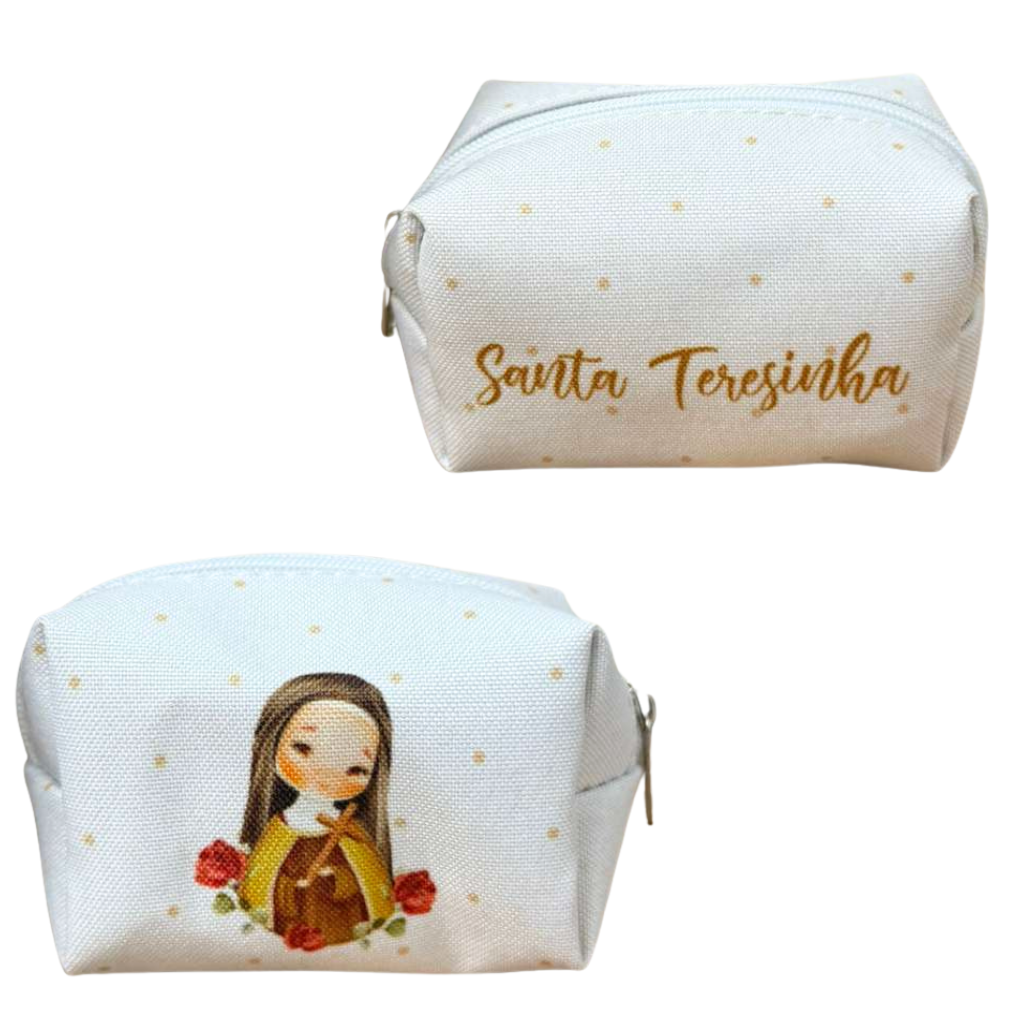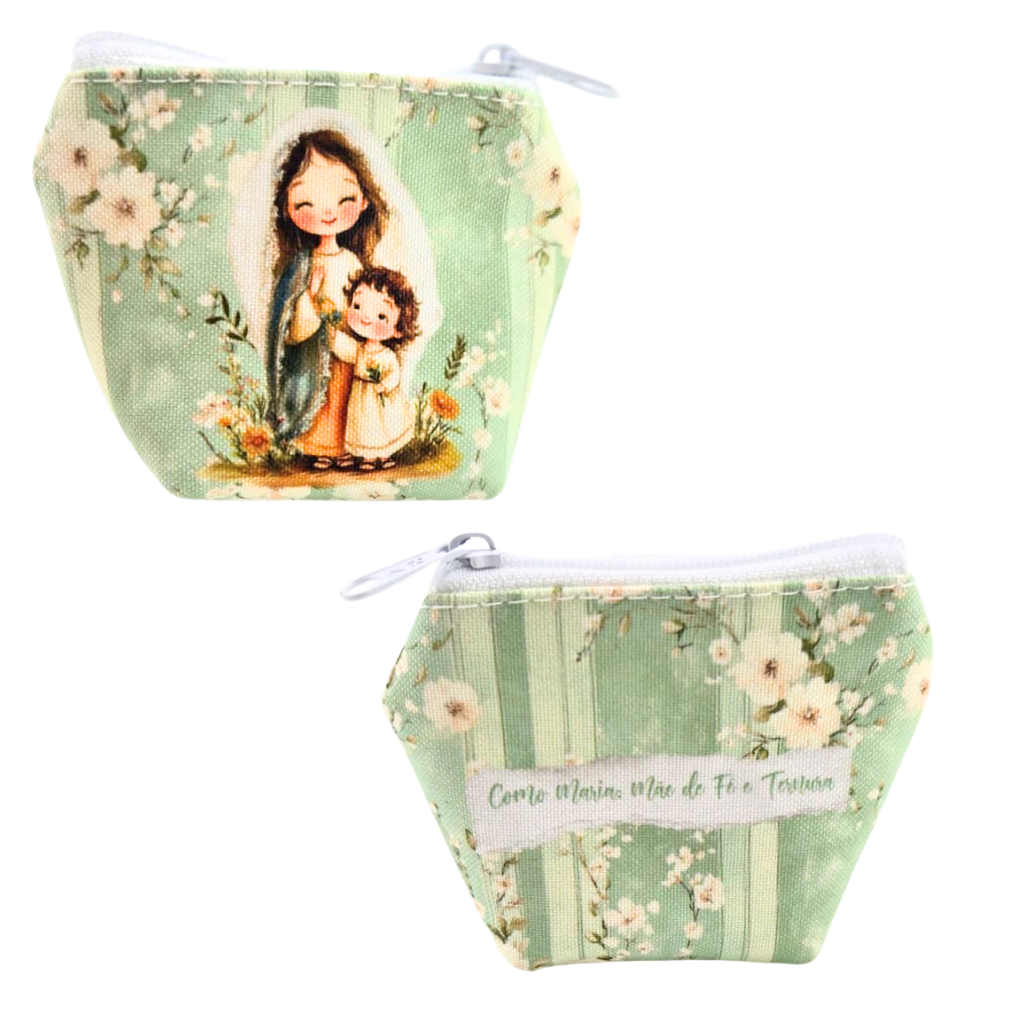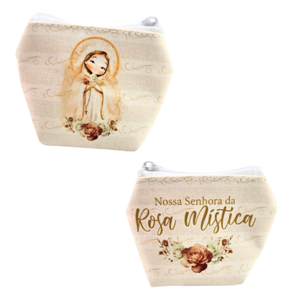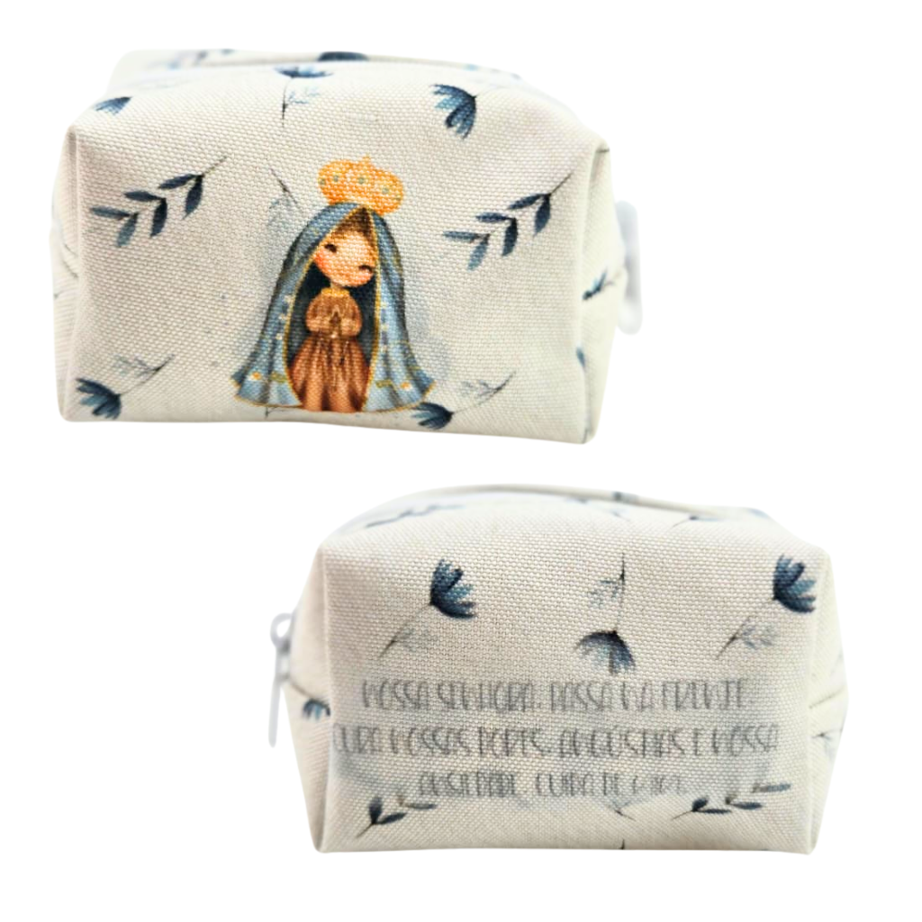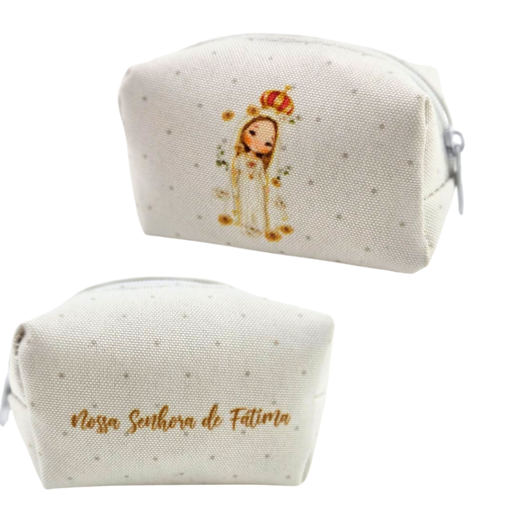 Leve seu terço com segurança e carinho. Confeccionada em tecido resistente e com fechamento em zíper, é prática, compacta e perfeita para proteger o terço no dia a dia.