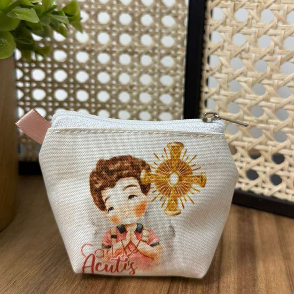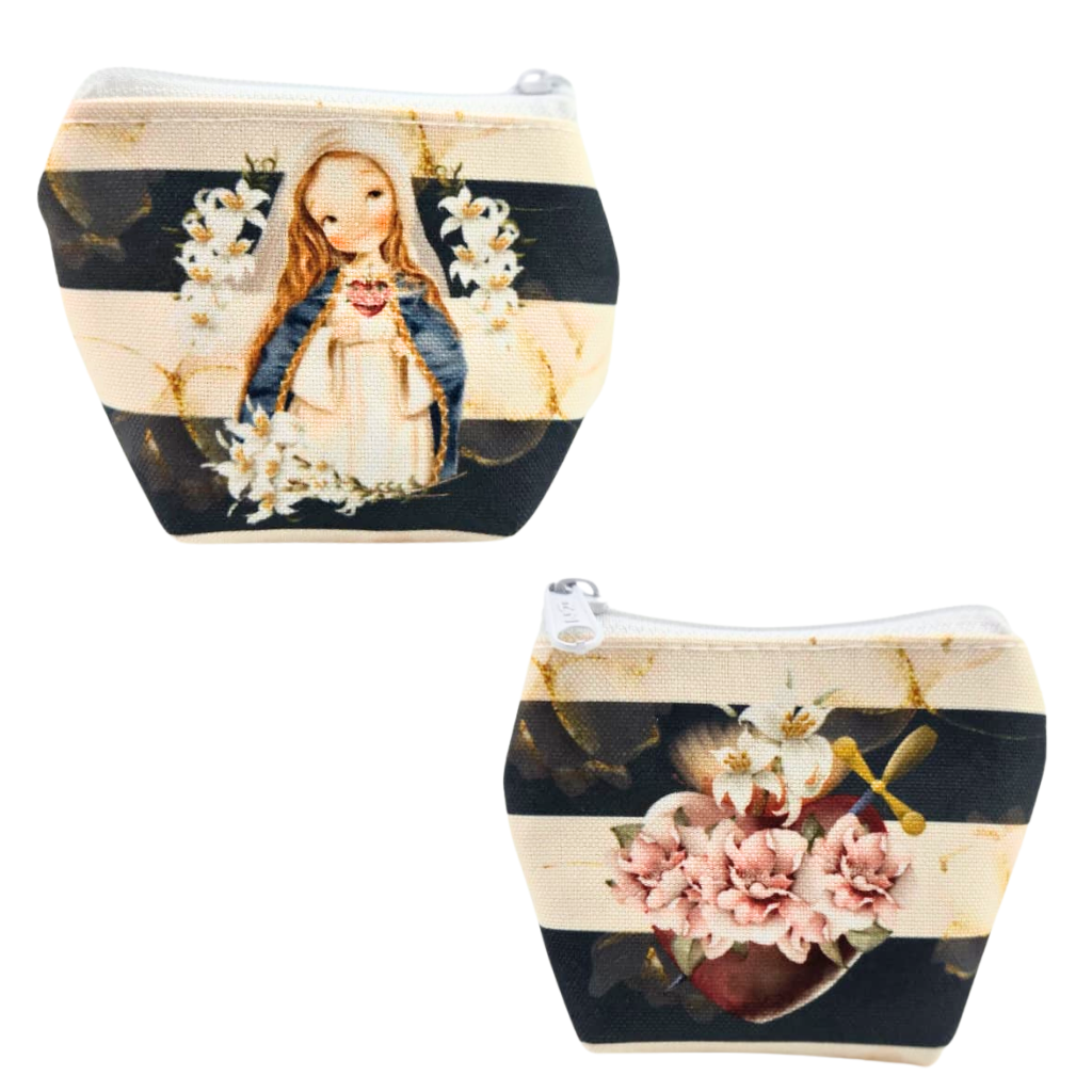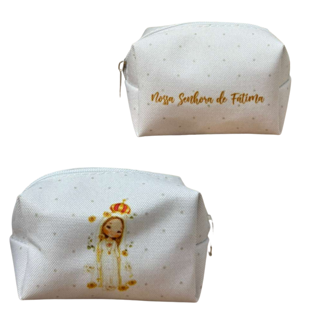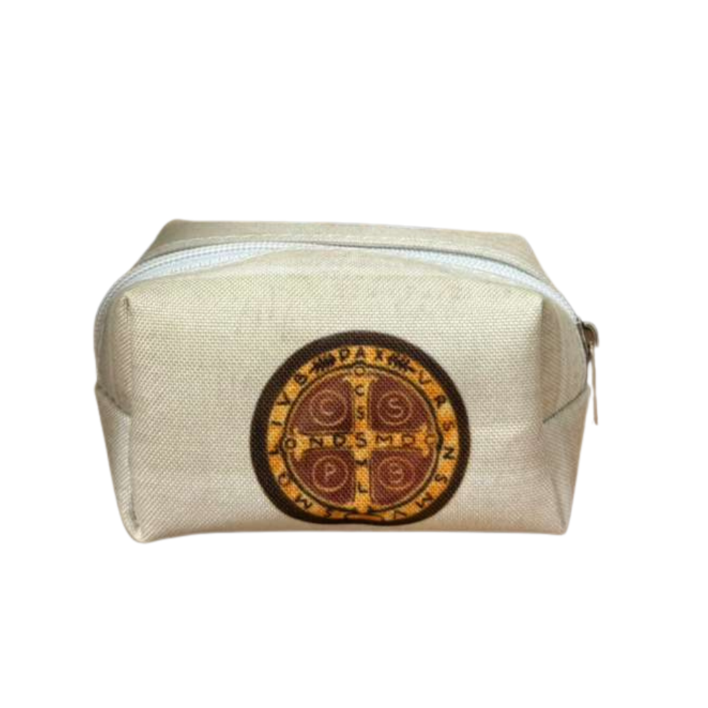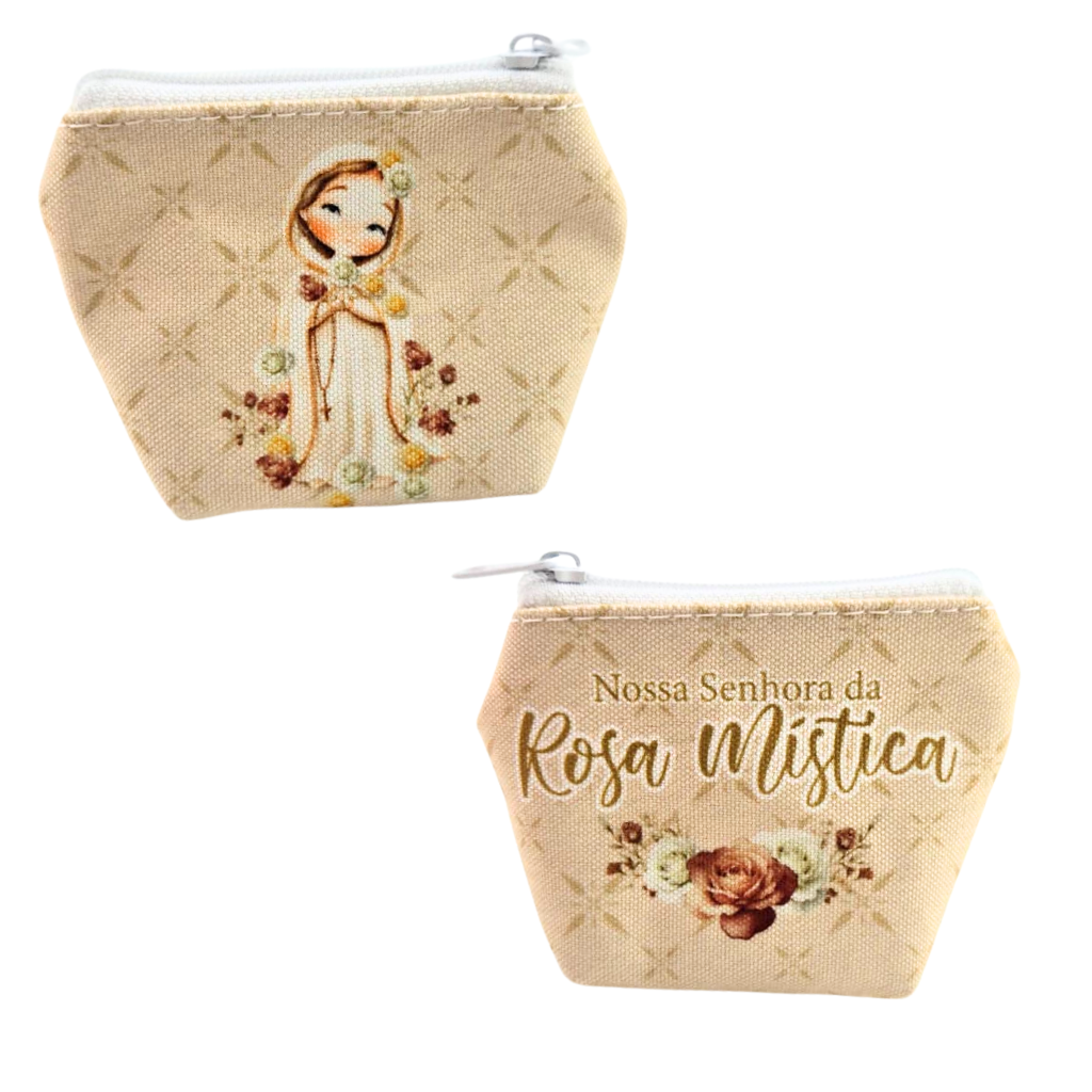 Leve seu terço com segurança e carinho. Confeccionada em tecido resistente e com fechamento em zíper, é prática, compacta e perfeita para proteger o terço no dia a dia.