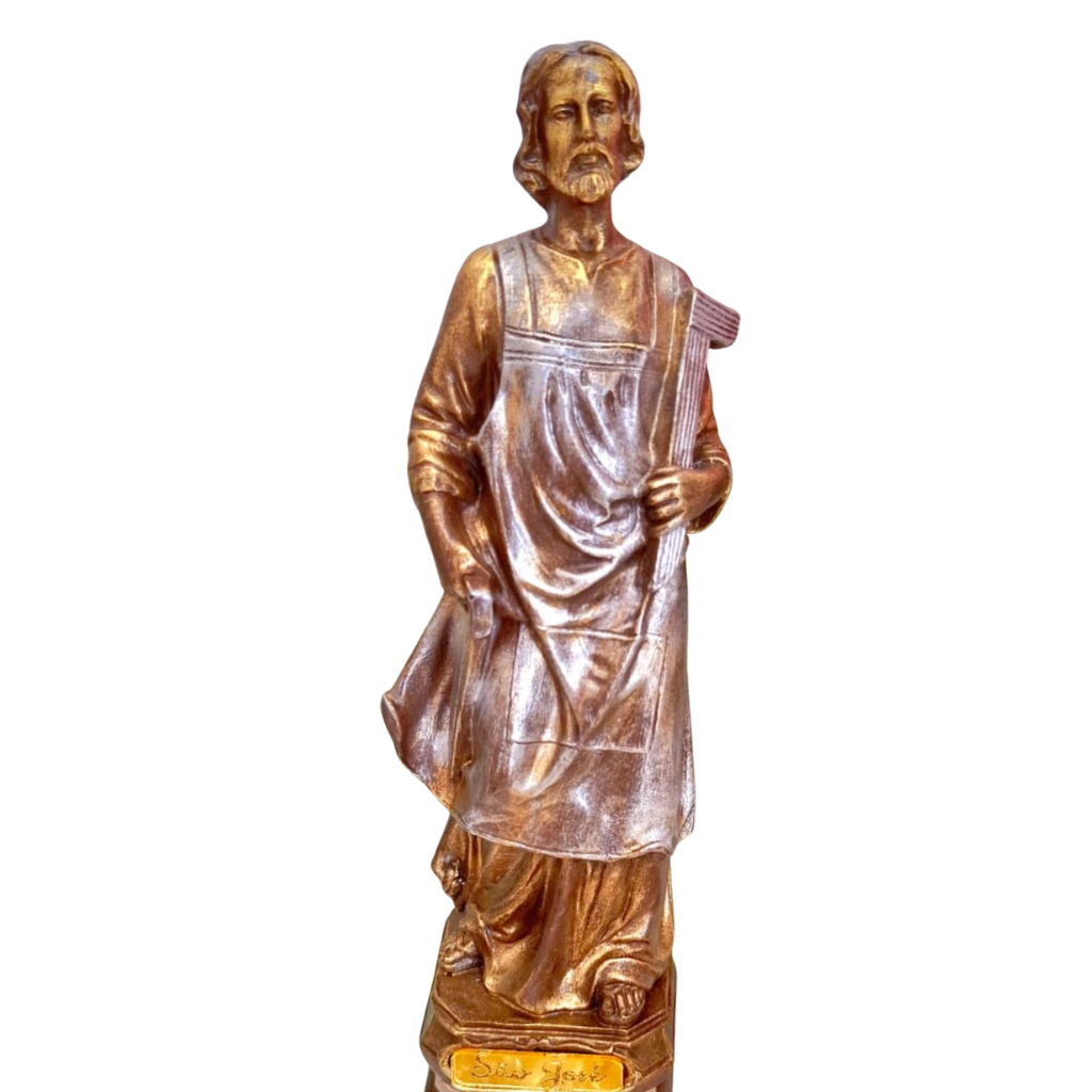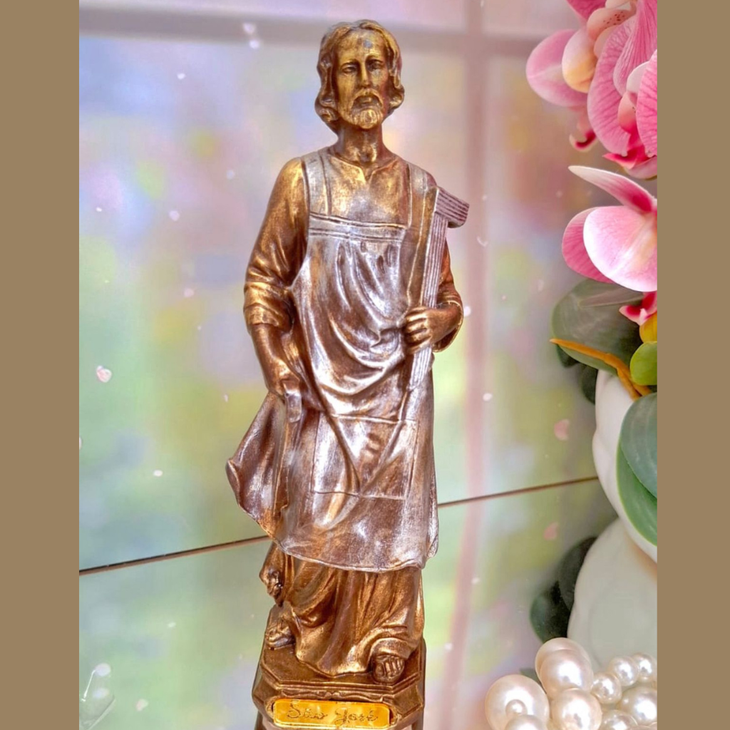 Esta imagem de São José Operário representa o homem justo e trabalhador, escolhido por Deus para sustentar e proteger a Sagrada Família com amor, silêncio e fidelidade.