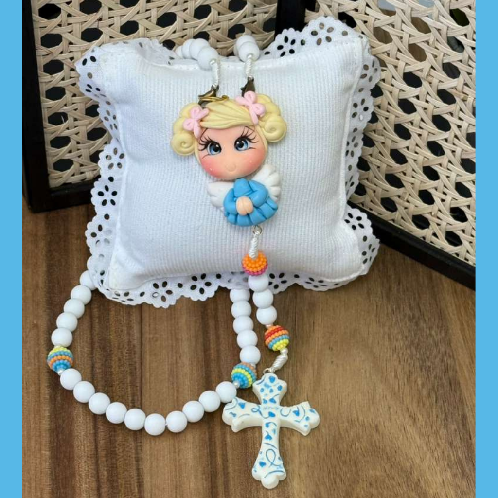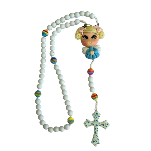 Terço Anjinha – Branco com Colorido Suave