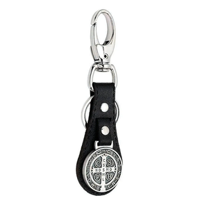 O chaveiro tem um design único com uma medalha de São Bento em prata velha, que adiciona um toque de elegância e sofisticação ao produto.
