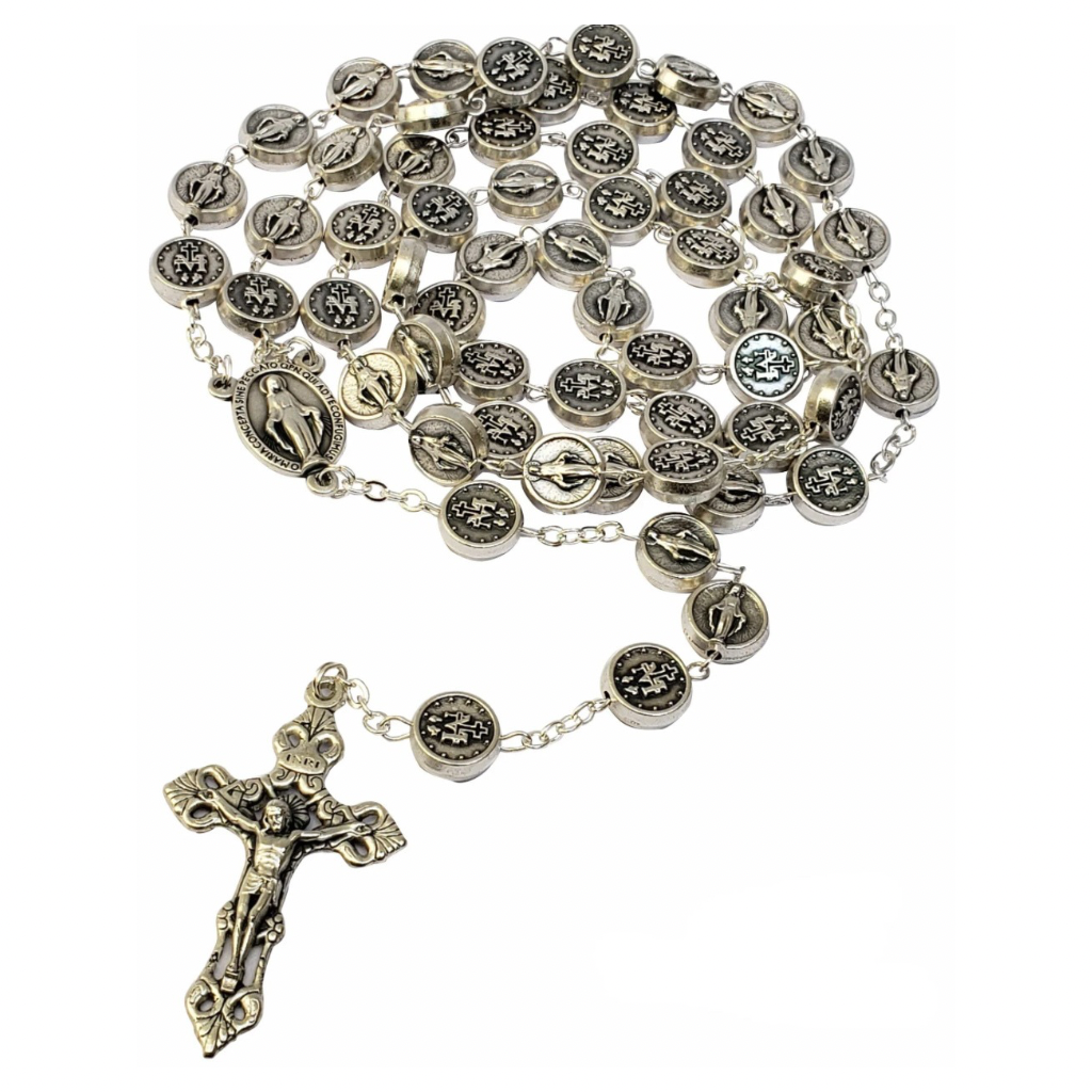 Terço Italiano de Nossa Senhora das Graças, Medalha Milagrosa em todas as contas. Nossos terços trazem consigo o encanto e a tradição da Itália. Nota-se que cada detalhe foi feito com muito carinho, feito de alpaca que realçam sua delicadeza e riqueza de detalhes.
