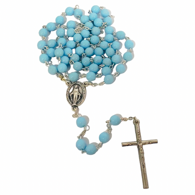 Terço Italiano de Vidro Azul está esgotado e será enviado assim que estiver de novo em estoque.